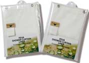 This shower curtain liner is Hotel Quality 100% polyester. It is mildew resistant with rustproof metal grommets. Available in Vanilla or White.